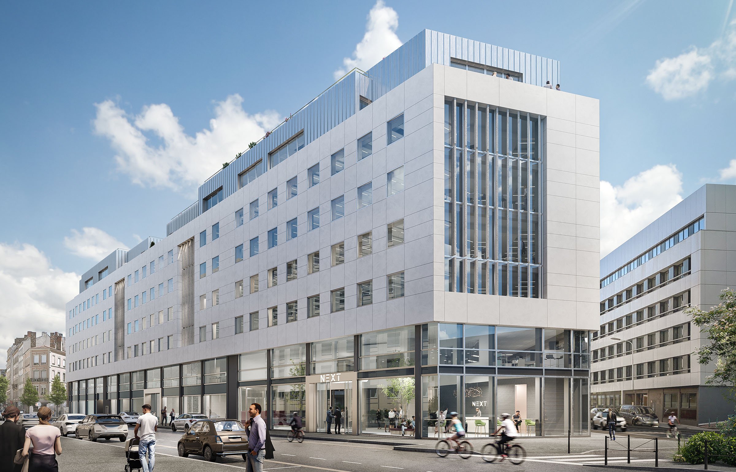 NEXT, immeuble des années 90, se réinvente grâce à un programme de restructuration complète adaptée aux nouveaux besoins des entreprises. Une ré architecture signée Archigroup tout en transparence ouverte sur le quartier : un socle actif de services et d’une offre fooding en pied d'immeuble, 7 niveaux de bureaux entièrement repensés, un vaste patio paysager pour travailler autrement, un rooftop de 1 500 m² avec une vue panoramique sur Lyon.